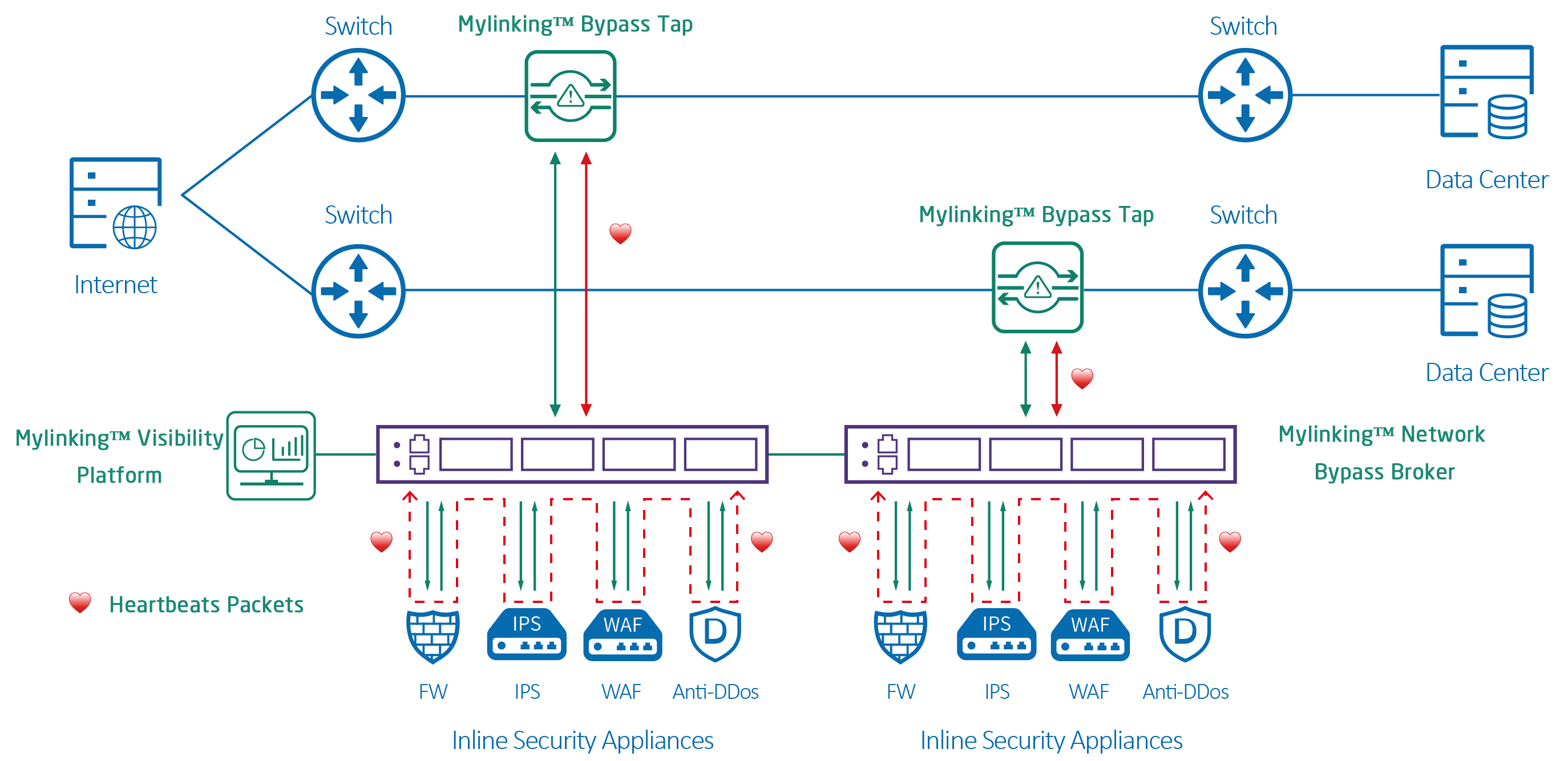 Mylinking™ Inline Network Bypass TAP ke tharollo e tsoetseng pele e etselitsoeng ho ntlafatsa phepelo ea lisebelisoa tsa ts'ireletso tsa inline ha o ntse o netefatsa khokahano ea marang-rang e sa sitisoeng le nako e fokolang nakong ea tlhokomelo kapa ho hloleha ha sesebelisoa. Ke ka lebaka lena mekhatlo e lokelang ho nahana ka ho kopanya Mylinking™ Inline Network Bypass TAP molemong oa lisebelisoa tsa bona tsa cybersecurity: